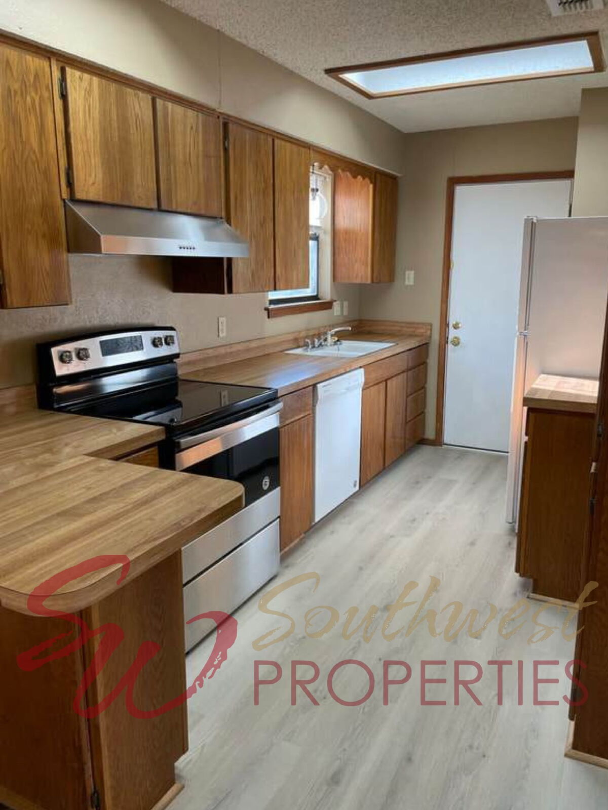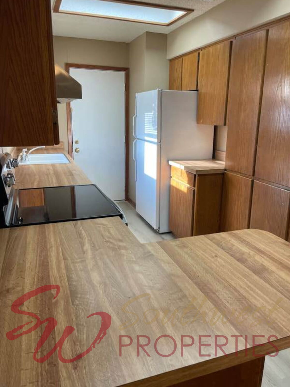 The galley-style kitchen offers great workspace and storage, plus a convenient peninsula bar — ideal for quick breakfasts, casual meals, or extra prep space when entertaining.
